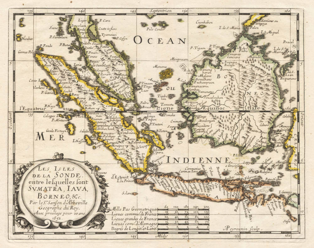 A important map covering Indonesia, from the first 1652 edition of the atlas L'Asie en plusieurs cartes nouvelles, et exactes & en divers traittés de Géographie, et d'Histoire.