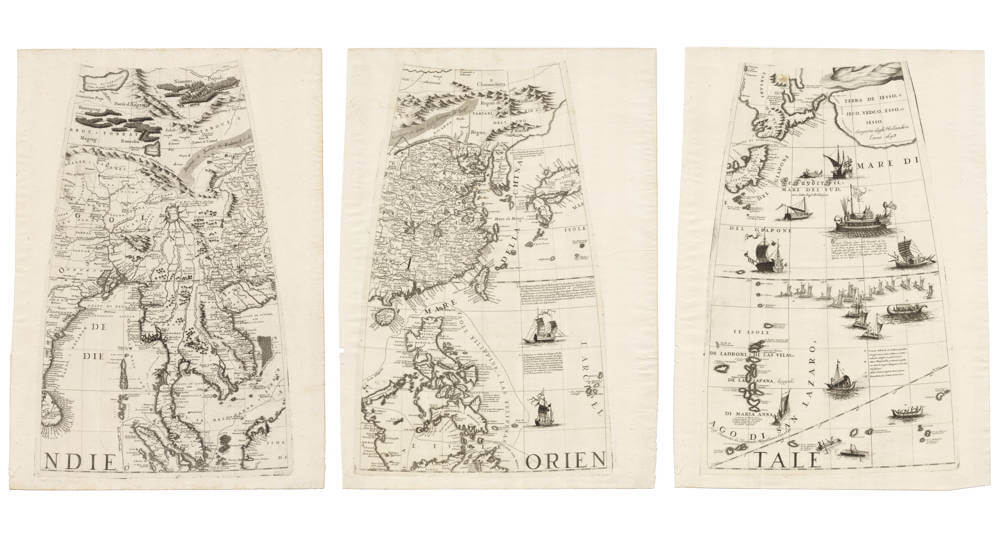 The quality of globes made for the courts created a market for other Coronelli globes. Their reputation was so wide that in 1688, he produces his Librei di Globi, containing large 42 inch (110 cm) globe gores for a globe of the world and of the heavens. Less than 20 assembled globes have survived, but separate globe gores from the book occasionally appear in the market.